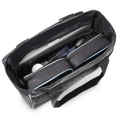 - Laukun etu- ja takaosassa suuret taskut läppärille sekä runsaasti kuminauhakiinnityslenkkejä